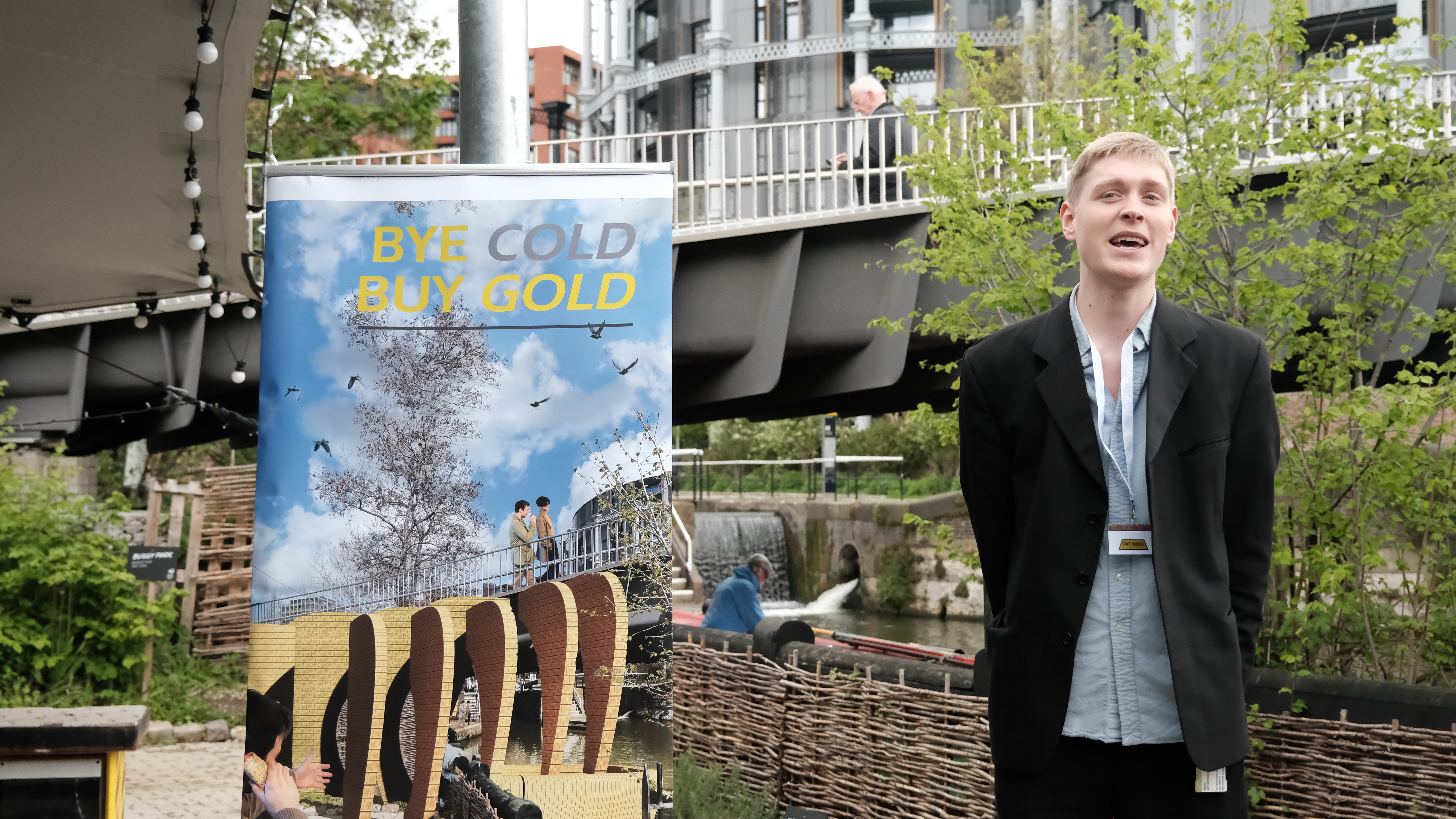 The Oat Brick was exhibited at Camley Street Nature Reserve, London, as part of a bigger group show Puhpowee! on the 28th of April 2023. Visitors and friends of the Bartlett engaged with the three pull-up banners, 100 Oat Bricks, leaflets and three fake salesmen performing a carefully curated script.